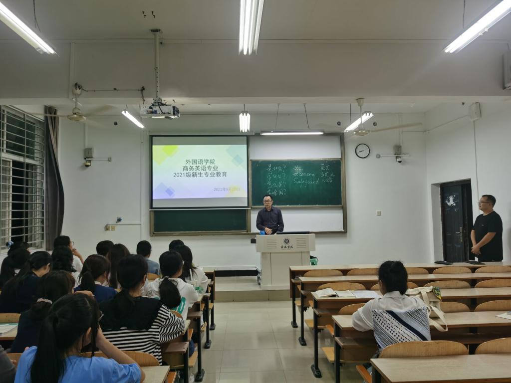 ok138cn太阳集团529高度重视2021级新生入学教育工作,为引导新生顺利完成角色转变,尽快融入新生活,9月28日晚上,ok138cn太阳集团529召开2021级新生入学教育。ok138cn太阳集团529院长罗德喜、党总支副书记程娇炎、学工干事何珊珊、教师代表、2021级新生辅导员和2021级新生参加了本次活动。
