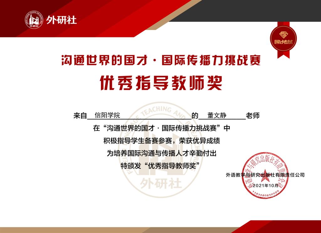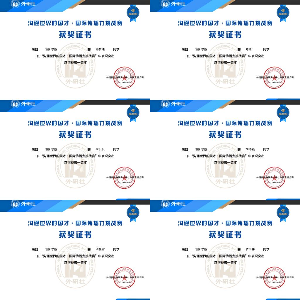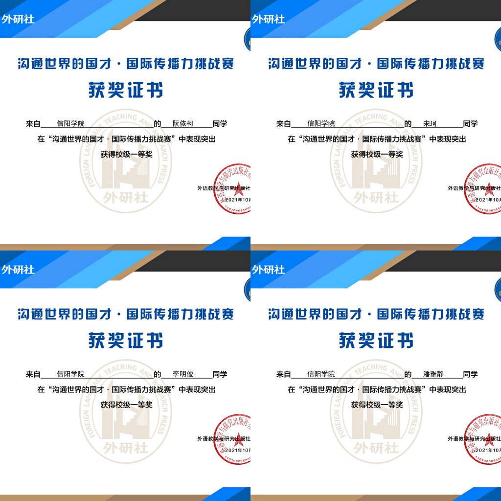 其中,2020级英语本科1班王梦瑶、2020级英语本科2班胡诗颖、田思楠;2020级英语本科3班罗小伟,2020级翻译本科1班宋贝贝等获得校级一等奖;董文静被评为优秀指导教师。