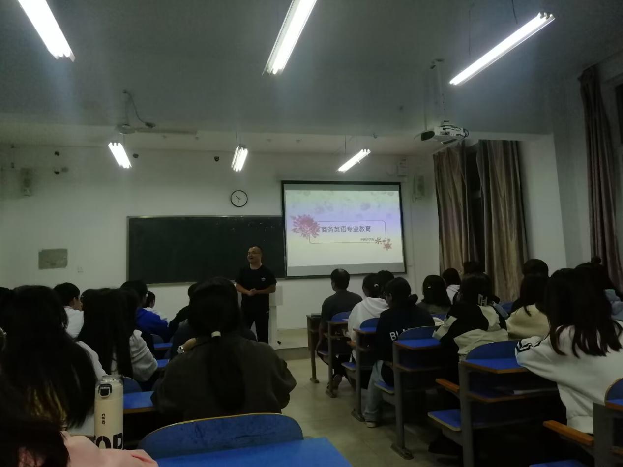 为了提高2023级商务英语专业同学们对商务英语的学习兴趣以及加深对专业培养方向的了解,9月26日晚,ok138cn太阳集团529在外语楼505教室举行了商务英语专业教育专题讲座。本次讲座由商务英语教研室主任陈俊明老师、田喜民教授、沈蕊老师和刘笑笑老师主讲。