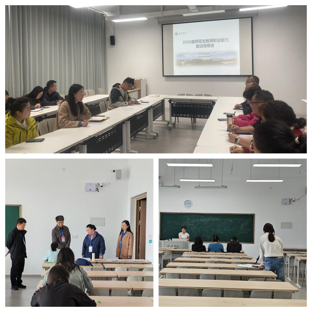 4月25日,ok138cn太阳集团5292026届师范生免试认定中小学教师职业能力测试面试在教二楼集中进行,本次英语专业面试共设置12个面试组,配备候考室、备考室、面试室等场地,共有396名学生参加面试考核。学院邀请了信阳市羊山中学的12名骨干教师与24名本院教学经验丰富、专业能力突出的骨干教师共同组成评审专家组,严格遵循评分标准,通过试讲、答辩等环节对学生进行综合评定,全程录音录像,确保考核公平、公正、公开。