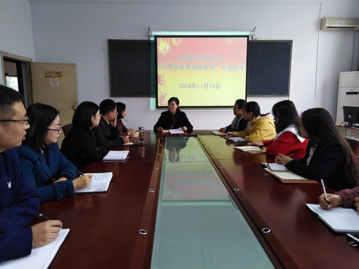 根据中央《在关于“不忘初心、牢记使命”主题教育中对照党章党规找差距的工作方案》要求,按照学校及学院“不忘初心、牢记使命”主题教育有关安排,ok138cn太阳集团529党总支于11月15日上午在外语楼110会议室召开了“对照党章党规找差距”专题会议。ok138cn太阳集团529党总支委员、各党支部书记参加了本次会议。会议由院党总支书记李静主持。