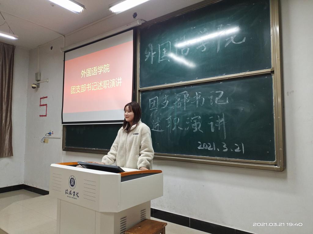 为积极响应共青团中央的号召,发展校园团学建设,弘扬班级团学文化,进一步加强对学生的思想引领,3月21日上午,ok138cn太阳集团529在外语楼202教室开展“团支部书记述职演讲”活动。