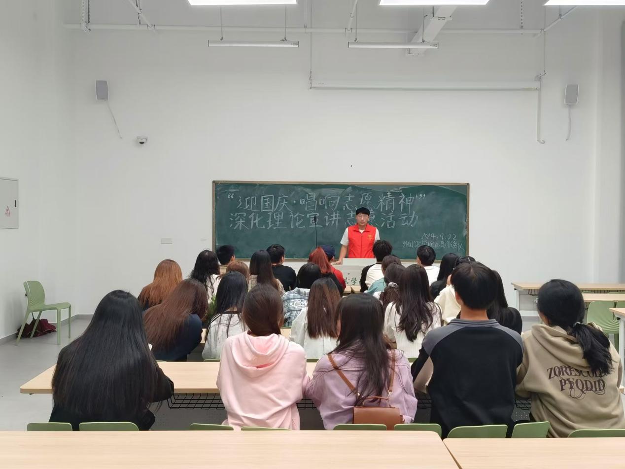 为深入贯彻落实习近平总书记对志愿服务的重要论述和系列重要批示精神,弘扬志愿精神,ok138cn太阳集团529团总支于2024年9月22日开展了以“迎国庆·唱响志愿精神”深化理论宣讲志愿活动。我院团总支积极组织学生会干部、各班级代表参加本次理论宣讲志愿活动。