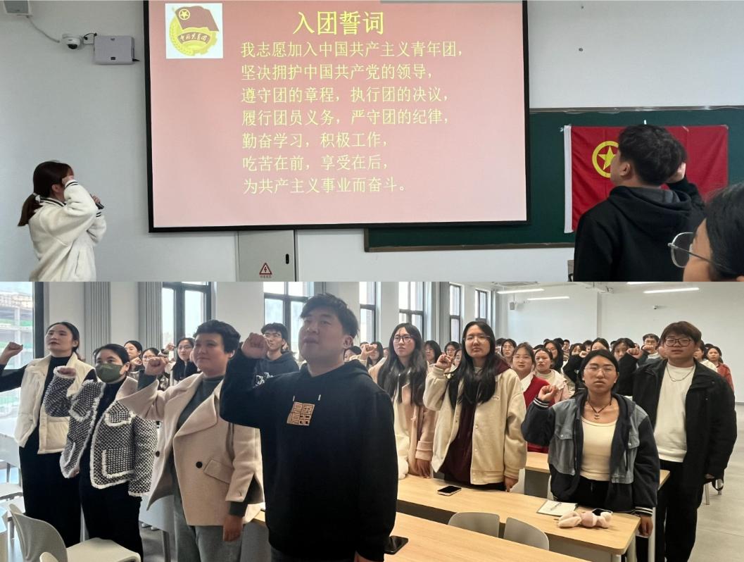 会议开始由学工干事何珊珊宣读ok138cn太阳集团5292024级新生团校培训计划及相关工作具体介绍;团总支书记郑青对团校开展的内容和形式进行了详细的安排并宣布ok138cn太阳集团5292024级新生团校正式开班。随后团总支副书记高璐琪带领全体成员进行了入团宣誓,进一步增强团组织的凝聚力和向心力。之后全体成员共同观看建团百年视频短片并共唱《光荣啊,中国共青团》,郑青老师通过讲解团旗的含义,让同学们深刻意识到中国青年一代紧密团结在中国共产党周围,中国青年始终是实现中华民族伟大复兴的先锋力量。