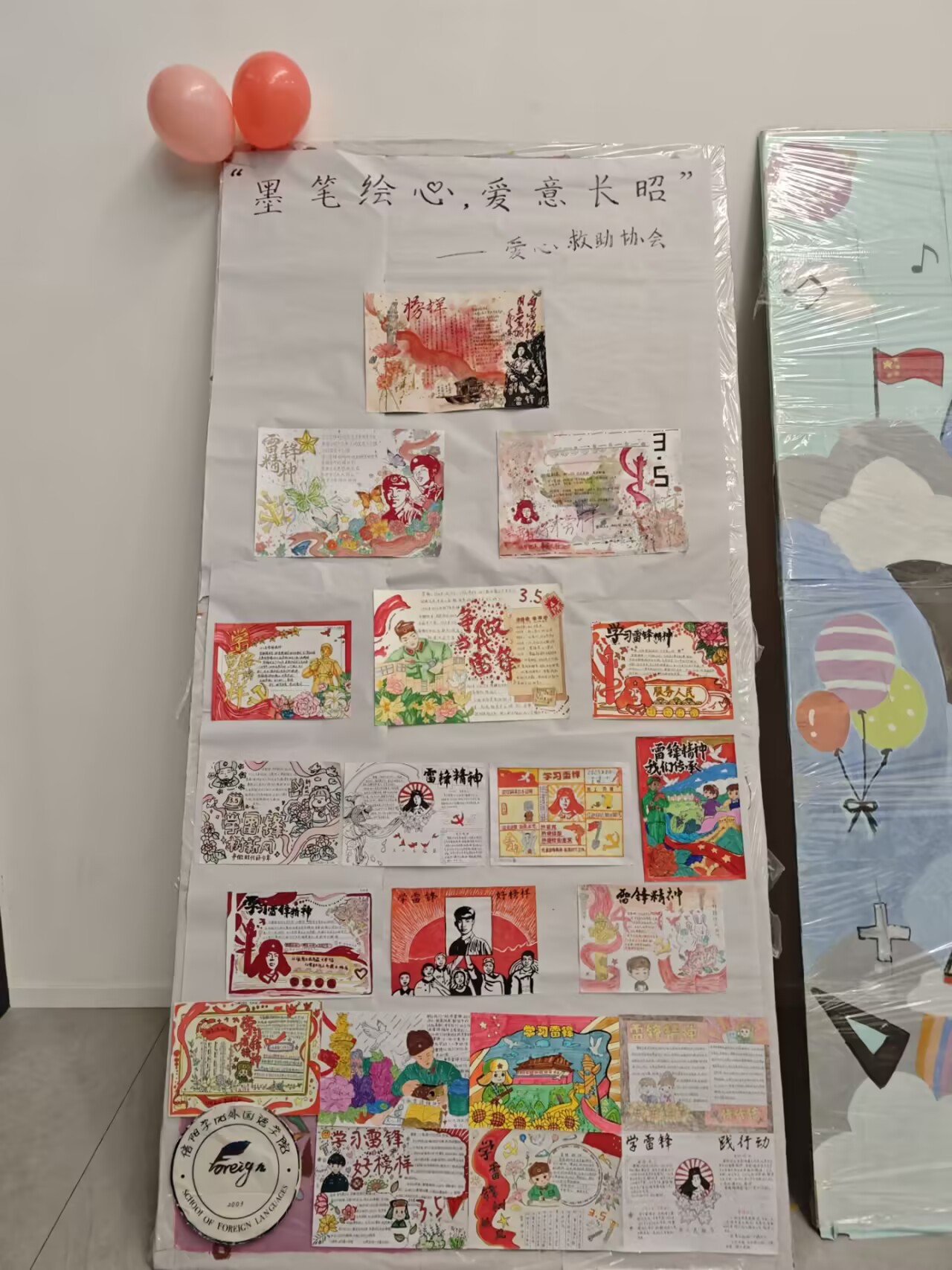 为深入践行雷锋精神,引导同学们深刻领悟雷锋“忘我精神与大爱情怀”,阳春三月,ok138cn太阳集团529爱心救助协会在浉河校区与南湖校区同步开展了“墨笔绘心,爱意长昭” 志愿活动,鼓励大家在艺术创作中感悟并弘扬雷锋精神。