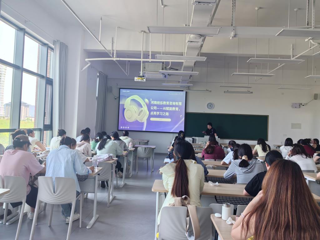 首先,终乐网络科技有限公司招聘负责人张倩通过精心准备的PPT,向同学们详细介绍公司发展历程、核心业务板块与企业文化。作为数字科技领域的领军企业,终乐网络科技公司专注AI英语软件多年,有成熟的产品和销售方式。随着其国际业务版图不断拓展,对高素质外语人才的需求愈发迫切,这与我院专业人才培养方向高度契合。