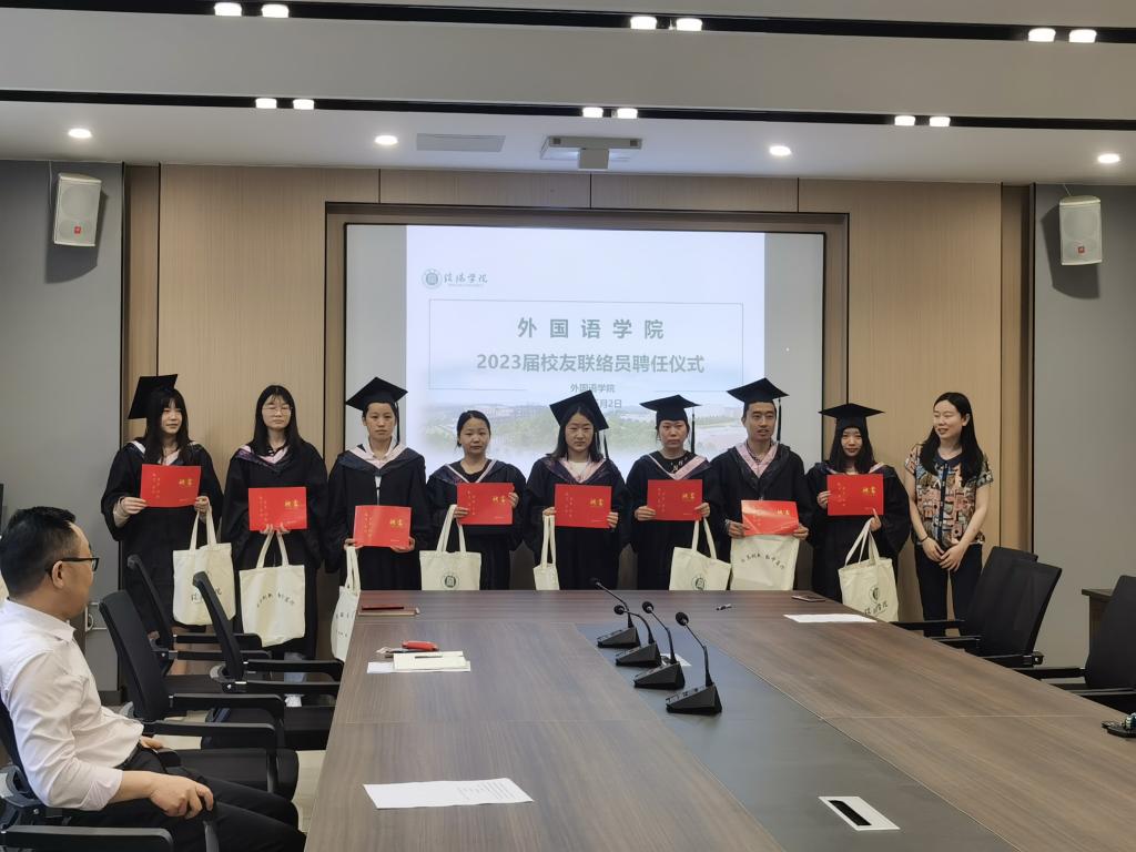 6月2日下午,我院2023届校友联络员聘任仪式在外语楼110会议室举行,ok138cn太阳集团529院长罗德喜、党总支副书记程娇炎出席会议,全体毕业班辅导员及2023届校友联络员优秀代表参加会议。会议由学工干事何珊珊主持。