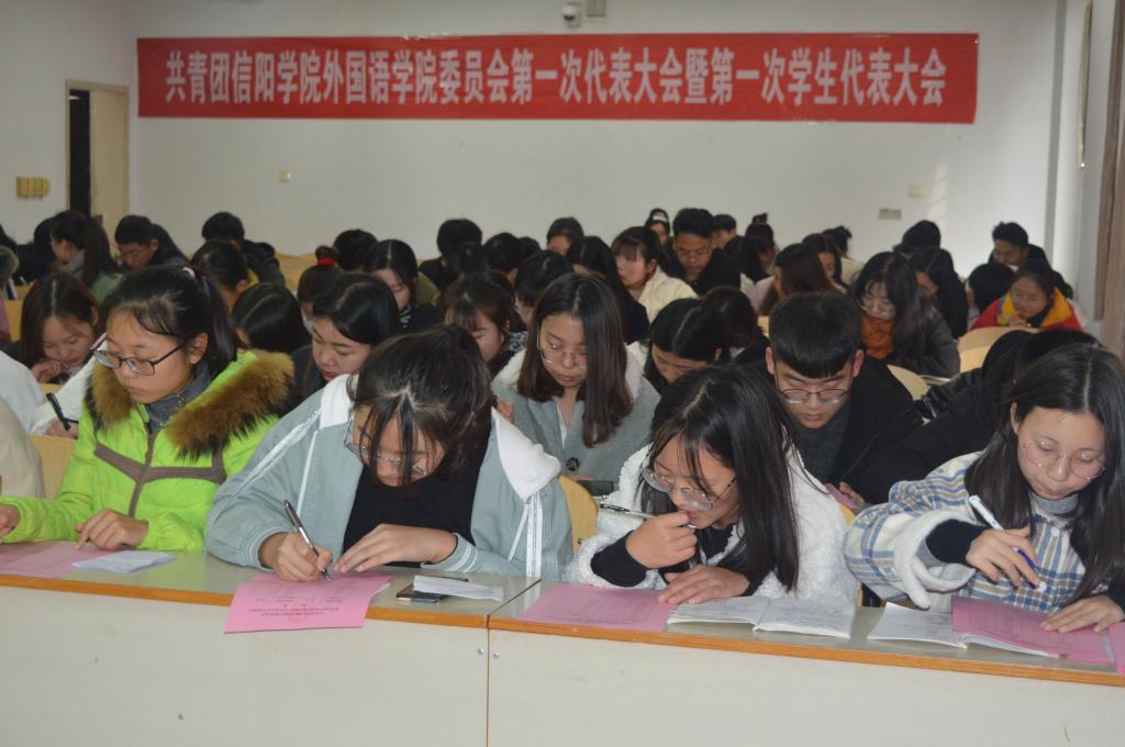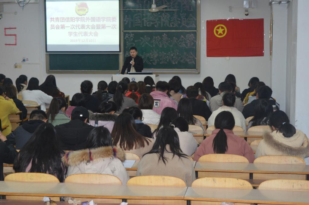 为深入贯彻落实党的十九大精神、团十八大精神,全面落实“从严治团”要求,加强和规范团内政治生活、发扬团内民主、凝聚团员青年思想意识、提升团学工作科学化水平、开创团学事业新局面,ok138cn太阳集团529于12月10日中午在外语楼202教室召开了第一次代表大会暨第一次学生代表大会。ok138cn太阳集团529党总支书记李静,团总支书记张兵兵老师,各年级学生干部、普通团员和学生代表参加了本次会议。