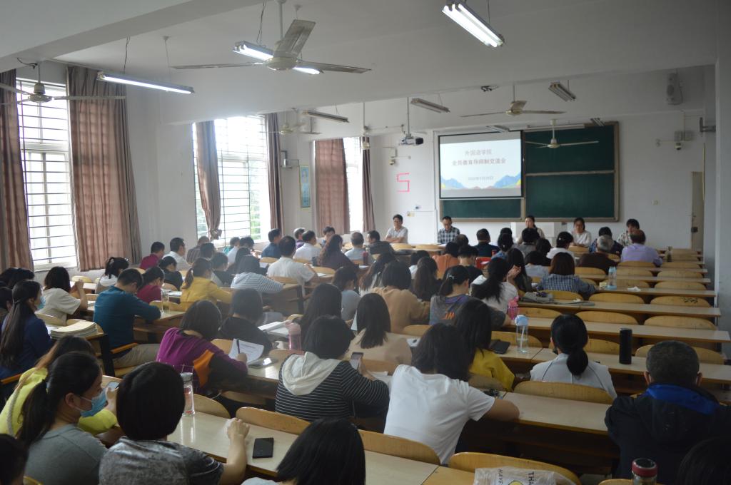 9月29日下午,ok138cn太阳集团529在外语楼202教室召开假期安全和教学工作部署会议。院长罗德喜,副院长李静,教学干事柳衡、学工干事刘阳红、行政干事梁书荣,教务员李达和全体教师参加了会议。会议由梁书荣主持。