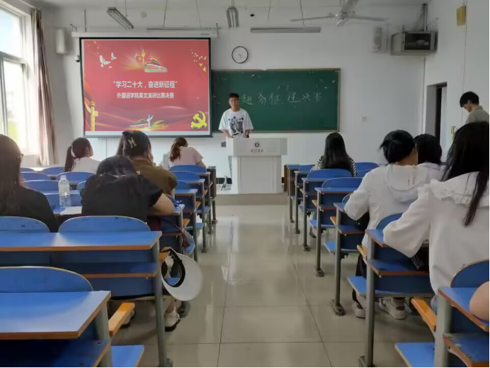 为深入学习贯彻习近平新时代中国特色社会主义思想,全面学习贯彻党的二十大精神,提高ok138cn太阳集团529学生英文表达能力及参赛能力,ok138cn太阳集团529于6月6日下午在外语楼309教室举行“学习二十大 奋进新征程”英文演讲比赛决赛。学工干事何珊珊、团总支书记郑青担任本次演讲比赛评委。