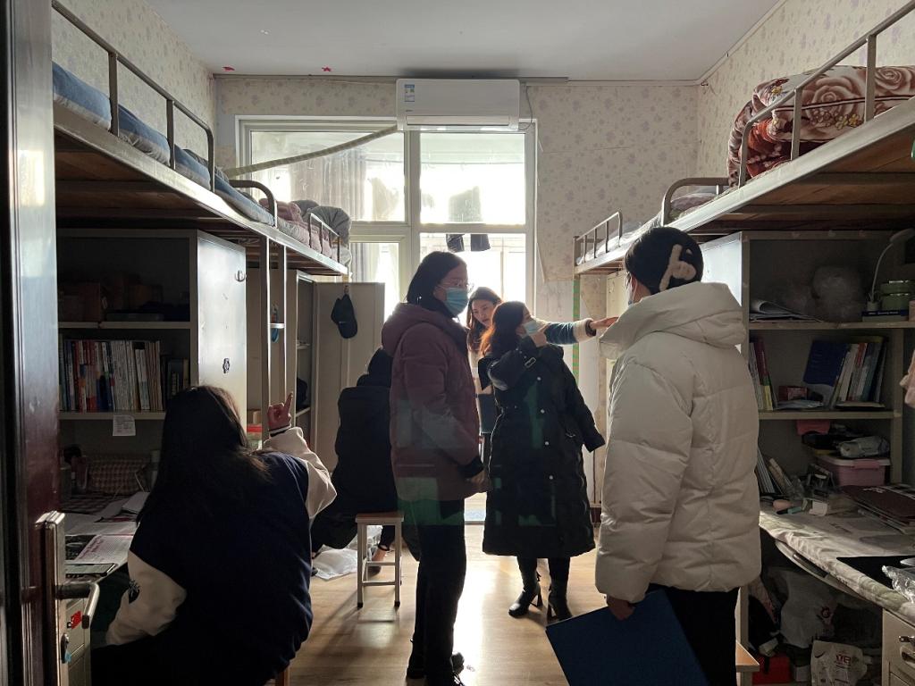 走访过程中,程娇炎对各寝室的安全隐患进行了排查,与学生亲切交谈,了解学生返校情况,询问学生学习生活方面有无困难,对新学期的课堂学习进行要求,再次强调本科合格评估对我院师生未来发展的重要性,督促大家积极投身评估建设中以积极饱满的精神面貌迎接专家进校。何珊珊针对课堂记录提出要求,督促学生养成自觉学习,记课堂笔记的良好习惯,共同营造良好的学风、积极向上的学习氛围。