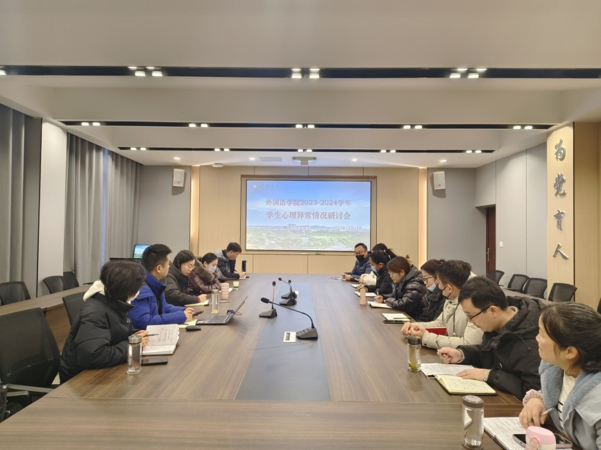 为进一步做好我院学生心理健康教育工作,在全面摸排的基础上,12月14日上午,ok138cn太阳集团529在外语楼110会议室召开学生心理异常情况研判会。学院党总支副书记程娇炎、大学生心理健康辅导中心宋川川、刘梦圆、学工干事何珊珊及全体辅导员参加会议,会议由何珊珊主持。