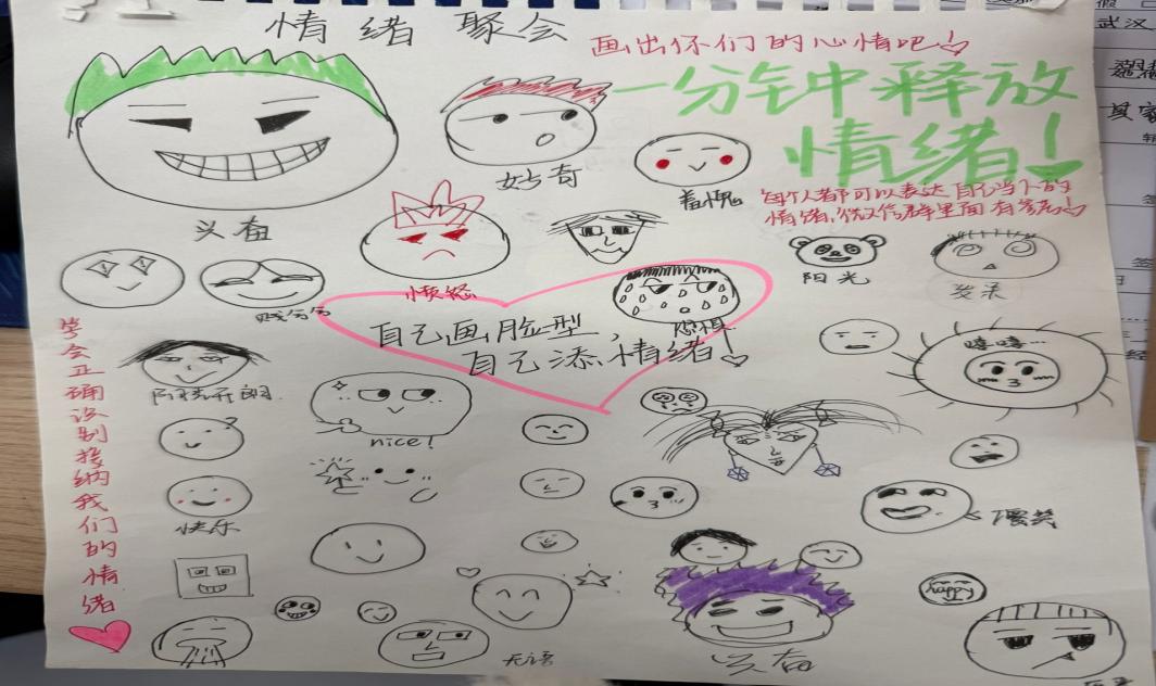 22英语本07班针对同学们的情绪压力,策划了“一分钟情绪释放”活动。参与者通过绘画表达内心不良情绪,在创作过程中实现情绪的释放与缓解,为同学们提供了直面情绪、自我疗愈的窗口。