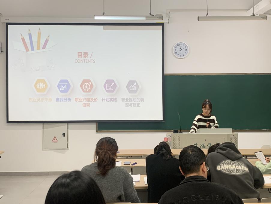 比赛过程中,各位参赛选手依次登台亮相,通过精心制作的PPT 展示以及生动流畅的讲解,展现了他们对未来职业生涯的深入思考和清晰规划。有的同学立志成为一名优秀的外语教师,结合当下教育行业对外语人才的需求,详细阐述了自己在教学技能提升、跨文化教学等方面的计划;有的选手则将目光投向征兵入伍方向,分析了该行业的发展前景,并展示了自己为积累翻译经验、考取相关专业证书所做的努力。还有的同学怀揣着外交梦,从国际关系现状出发,规划了自己如何通过语言优势在对外交流舞台上贡献力量。选手们独特的视角、翔实的规划以及自信满满的台风,赢得了现场评委和观众们的阵阵掌声。