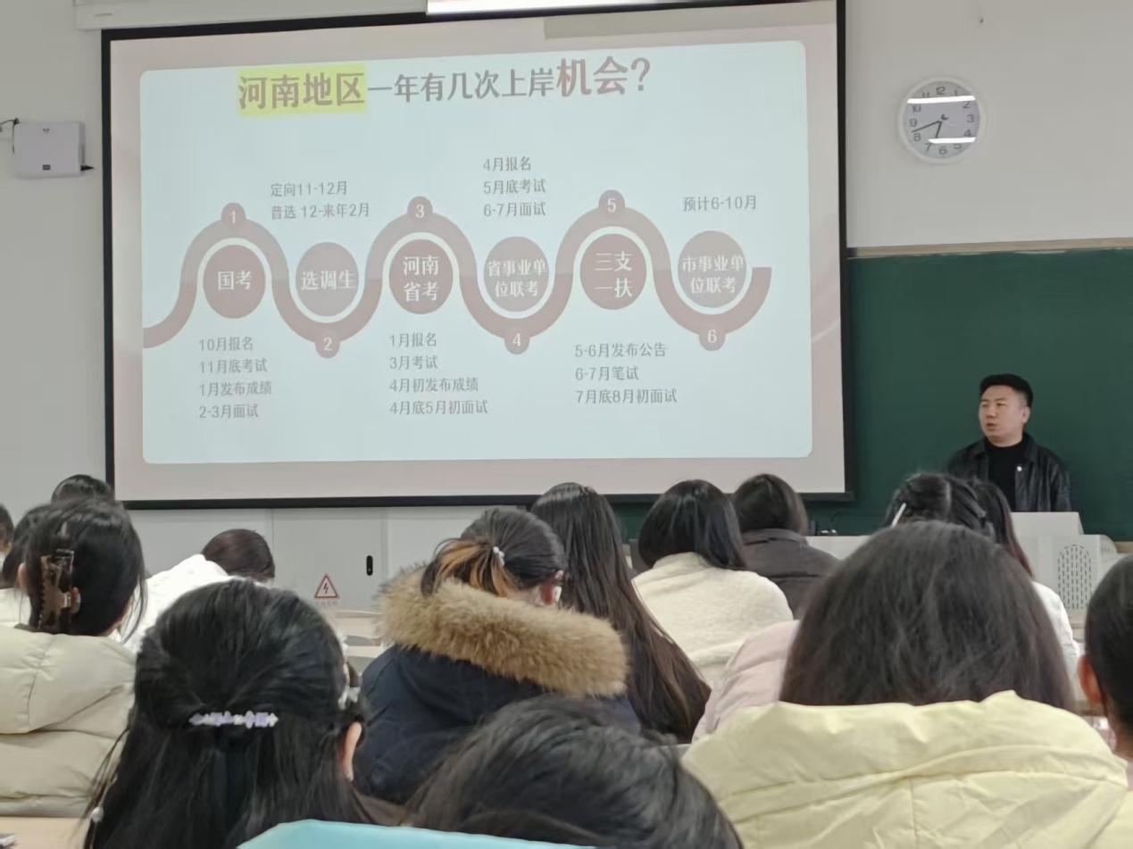 12月8日,面对激烈就业竞争,公务员岗位成为外语专业学子热门选择,但备考中存在行测刷题效率低、申论立意偏差等痛点,且面临政策信息滞后、缺乏专业规划等困境。为破解难题,ok138cn太阳集团529特邀公考资深专家冯老师开展“考公考编 上岸计划”专题讲座。