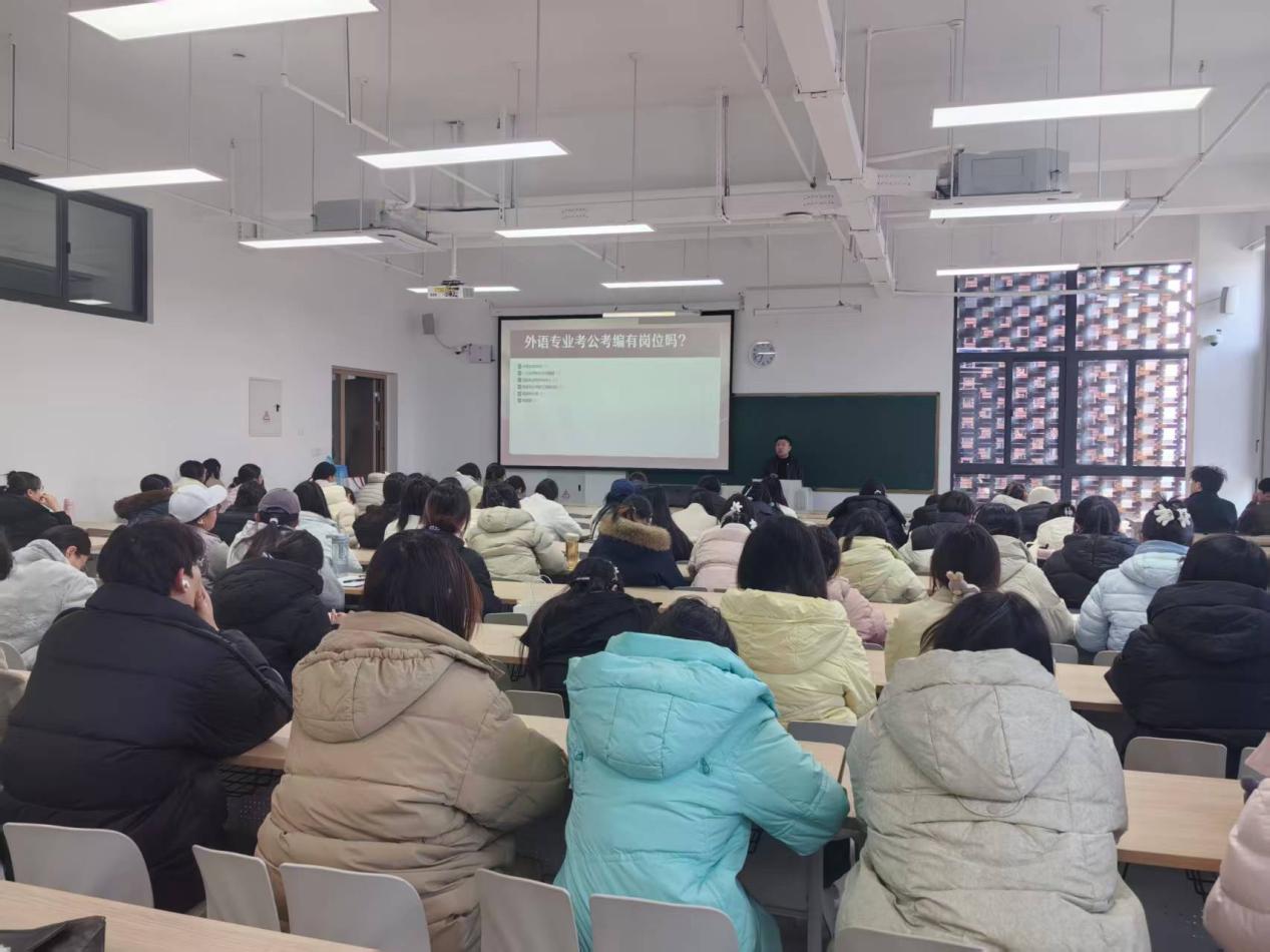 此次讲座紧扣学院精准对接外语专业学子就业需求、强化就业服务赋能实效的工作导向,以精准实用的备考指导破解核心痛点,获得学生广泛认可。不仅为外语专业学子的公考之路筑牢能力根基,更以系统性支持助力其高效备考、顺利上岸。