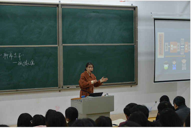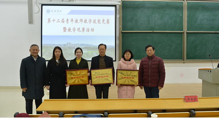 在前期竞赛基础上,本届教师教学技能竞赛一等奖获得者依次进行教学示范。文学院院长毛正天教授、教育学院杨洪德教授、数学与统计学院院长俞迎达教授分别对选手现场示范进行点评,并对本届竞赛各组选手的教学组织、教学方法、教学艺术、板书设计和语态教态等方面提出了改进意见。