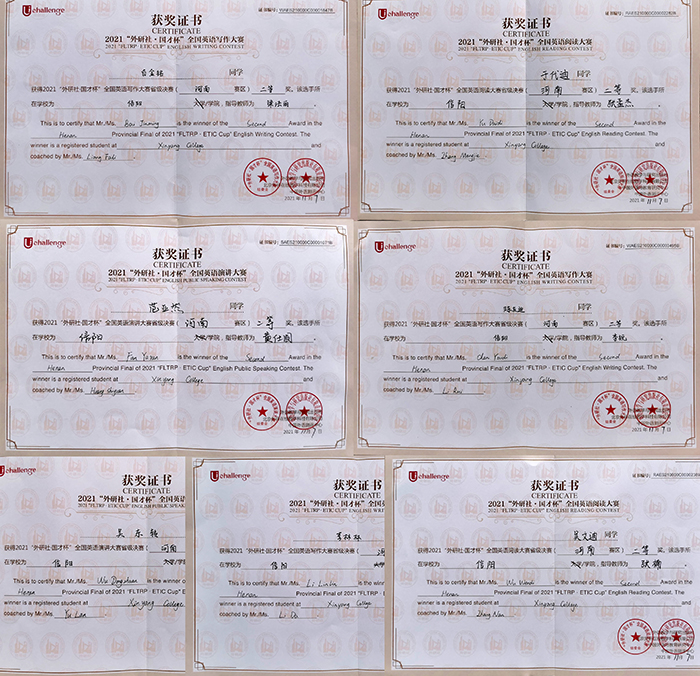 经过一天的激烈比拼,我校ok138cn太阳集团5298名选手凭借扎实的语言功底、良好的心理素质和出色的应变能力脱颖而出,共斩获一等奖1项,二等奖5项,三等奖2项。其中,闫小雨荣获阅读大赛一等奖,于代迪、吴文迪荣获阅读大赛二等奖;白金铭、陈友迪荣获写作大赛二等奖,李林林荣获写作大赛三等奖;范亚然荣获演讲大赛二等奖,吴东转荣获演讲大赛三等奖。