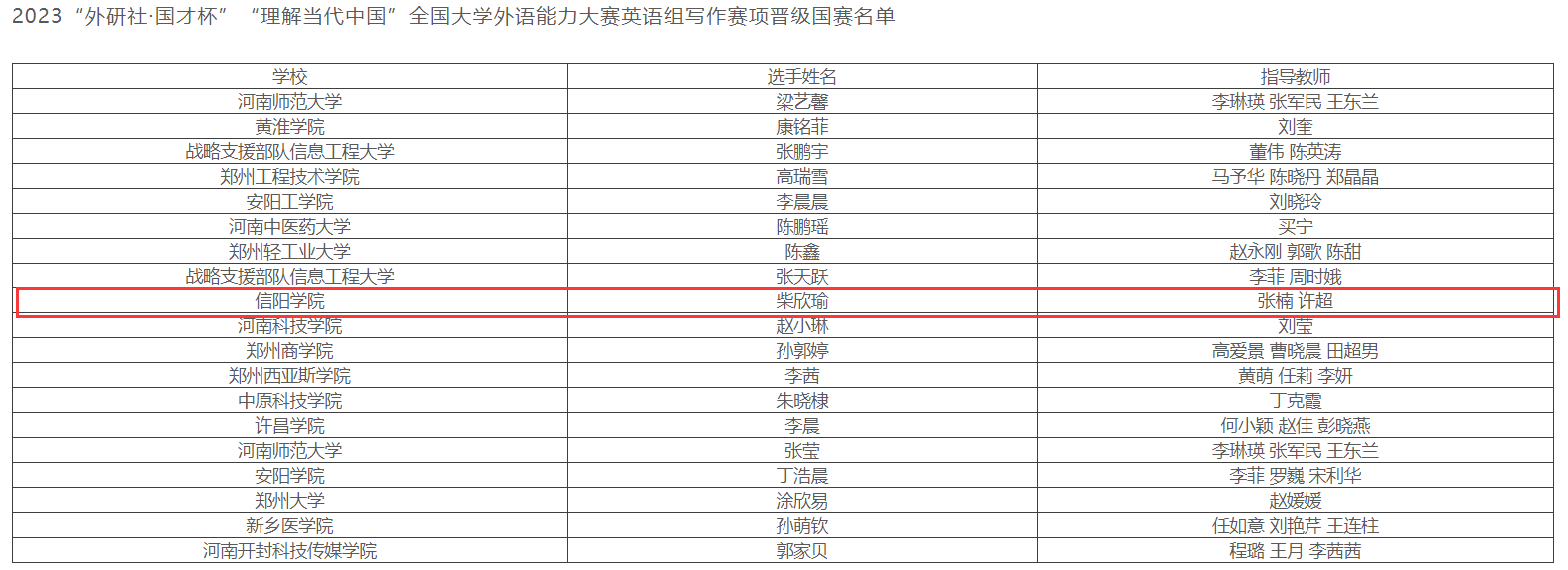 2023“外研社·国才杯”“理解当代中国”全国大学外语能力大赛英语组写作赛项晋级国赛名单
