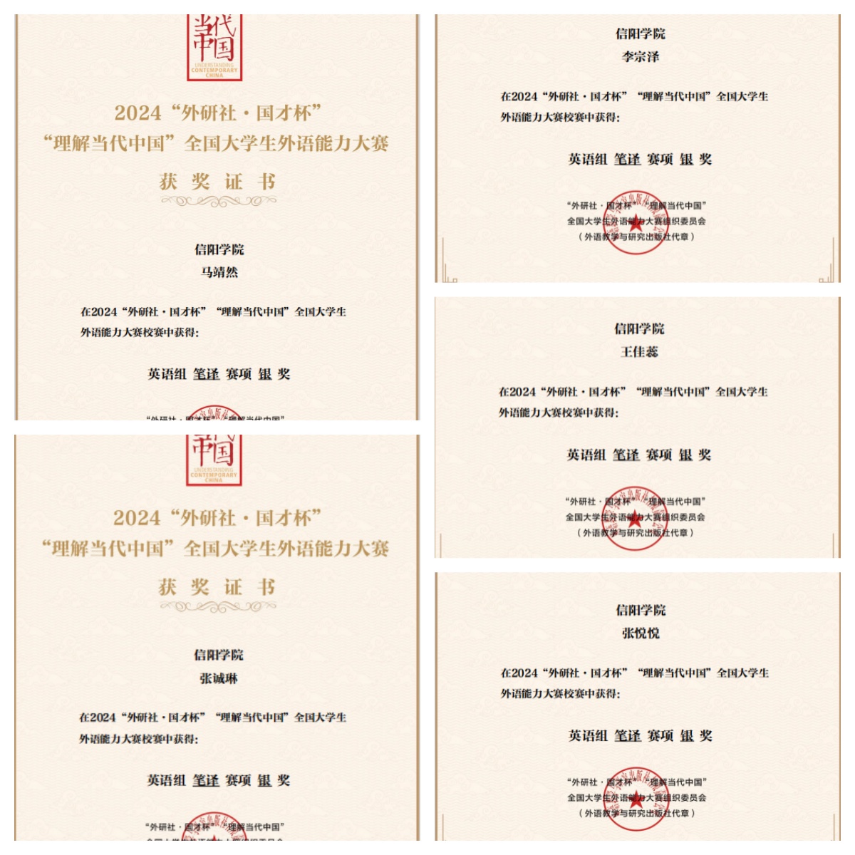 近日,2024“外研社·国才杯”“理解当代中国”全国大学生外语能力大赛笔译赛项校赛结果已经公布,经过激烈角逐,ok138cn太阳集团529在校赛中斩获金奖2项,银奖5项,铜奖6项。