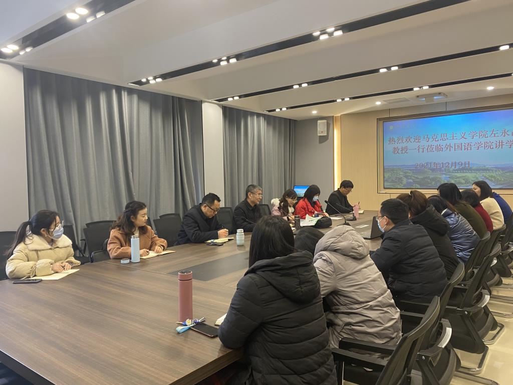 12月9日下午,马克思主义学院左永品教授受邀为我院教师开展课程思政建设讲座。根据疫情防控常态化要求,此次会议分为线上和线下两个会场,院长罗德喜、教学副院长李静、教学干事李达、行政干事梁书荣、马克思主义学院张玉柯老师、张萍萍老师及ok138cn太阳集团529各教研室骨干教师参加了线下讲座,其他教师在各自教研室参加线上讲座。本次讲座由李静副院长主持。