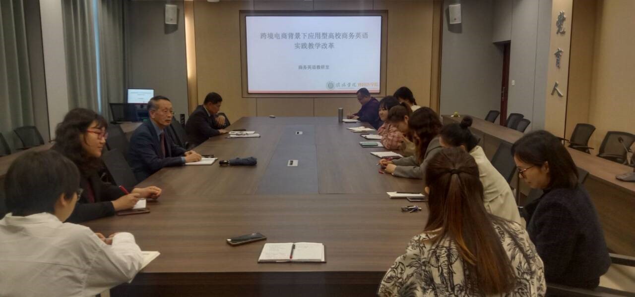 首先,陈俊明主任就跨境电商定义及其兴起与发展和跨境电商行业人才需求做了详细介绍,并就应用型本科高校商务英语教学现状进行了全面分析。他指出传统的商务英语教学模式过于注重语法和词汇的教学,缺乏实际应用能力培养,缺乏与相应电商企业之间开展合作形式的教学;教师虽具有丰富的语言教学经验,但是电商专业知识相对缺乏;高校商英专业授课主要内容为专业课,实践和创业等方面的课程设置较少,长期下去不利于学生创新能力的培养,不利于学生职业素养的提升。随后,陈俊明主任结合自己的科研和教学经历,分享了跨境电商快速发展的背景下,商务英语教学改革和创新的体会和反思。在随后的讨论环节中,督导专家和教研室的老师们纷纷就跨境电商背景下应用型高校商务英语实践教学改革发表了自己的见解。他们一致认为,跨境电商行业的发展速度非常快,需要不断更新和适应新的发展趋势,因此商务英语教学也需要与时俱进,不断优化教学内容和方法,注重实践教学和案例分析,培养学生解决实际问题的能力。最后,陈俊明主任对本次的活动做出了总结发言,商务英语实践教学改革是必要的,只有通过改革才能培养出适应跨境电商行业发展需要的优秀人才。
