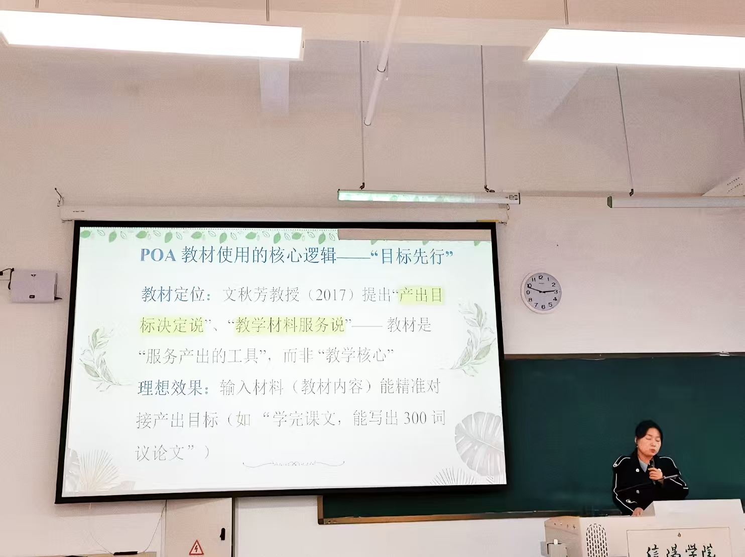 为紧跟数智时代教育变革步伐,切实提升教师数字化教学应用能力,有效破解产出导向法(POA)教学中的教材使用难题,10月24日,ok138cn太阳集团529英语语言文学教研室在南湖校区教二楼415教室举办了以“AI赋能POA教材使用的课堂实践与探索”为主题的教研活动。ok138cn太阳集团529领导班子成员、专家教授及全体教师参加了本次活动。活动由张秀云老师主讲,英语语言文学教研室主任周善春老师主持。