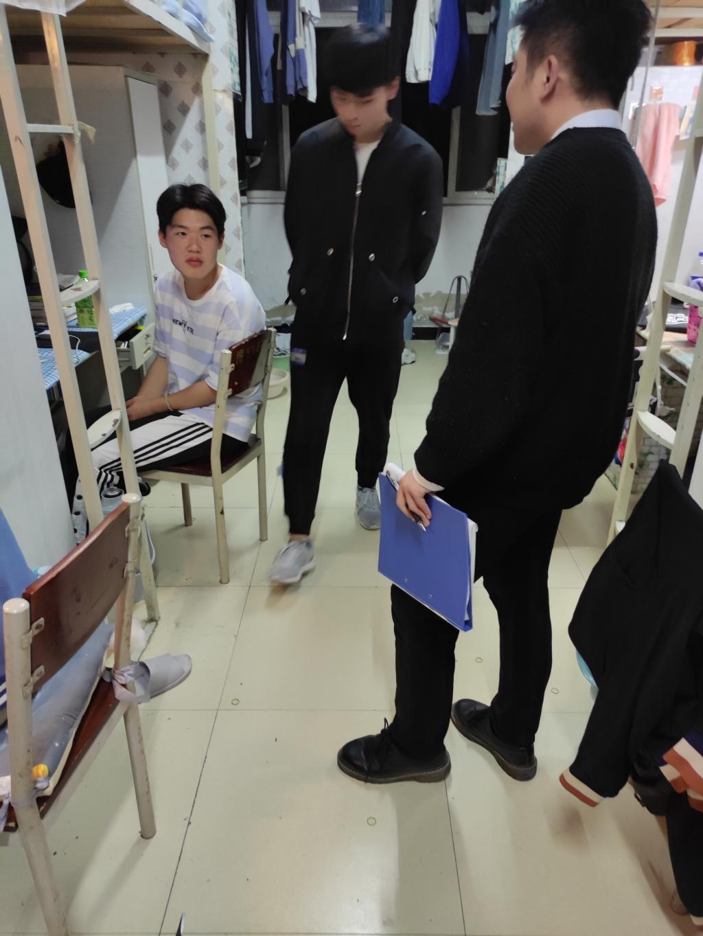 本次宿舍走访采取全覆盖、无死角检查,走访过程中,程娇炎反复叮嘱学生要增强安全防范意识,收到陌生电话或短信时做到“一警惕、二分辨、三反映”,及时向辅导员、家长询问短信内容真伪,不盲目轻信短信内容甚至汇款,谨防人身和财产安全,同时强调要注意宿舍卫生,营造安全舒适的寝室环境以及和谐轻松的寝室氛围。