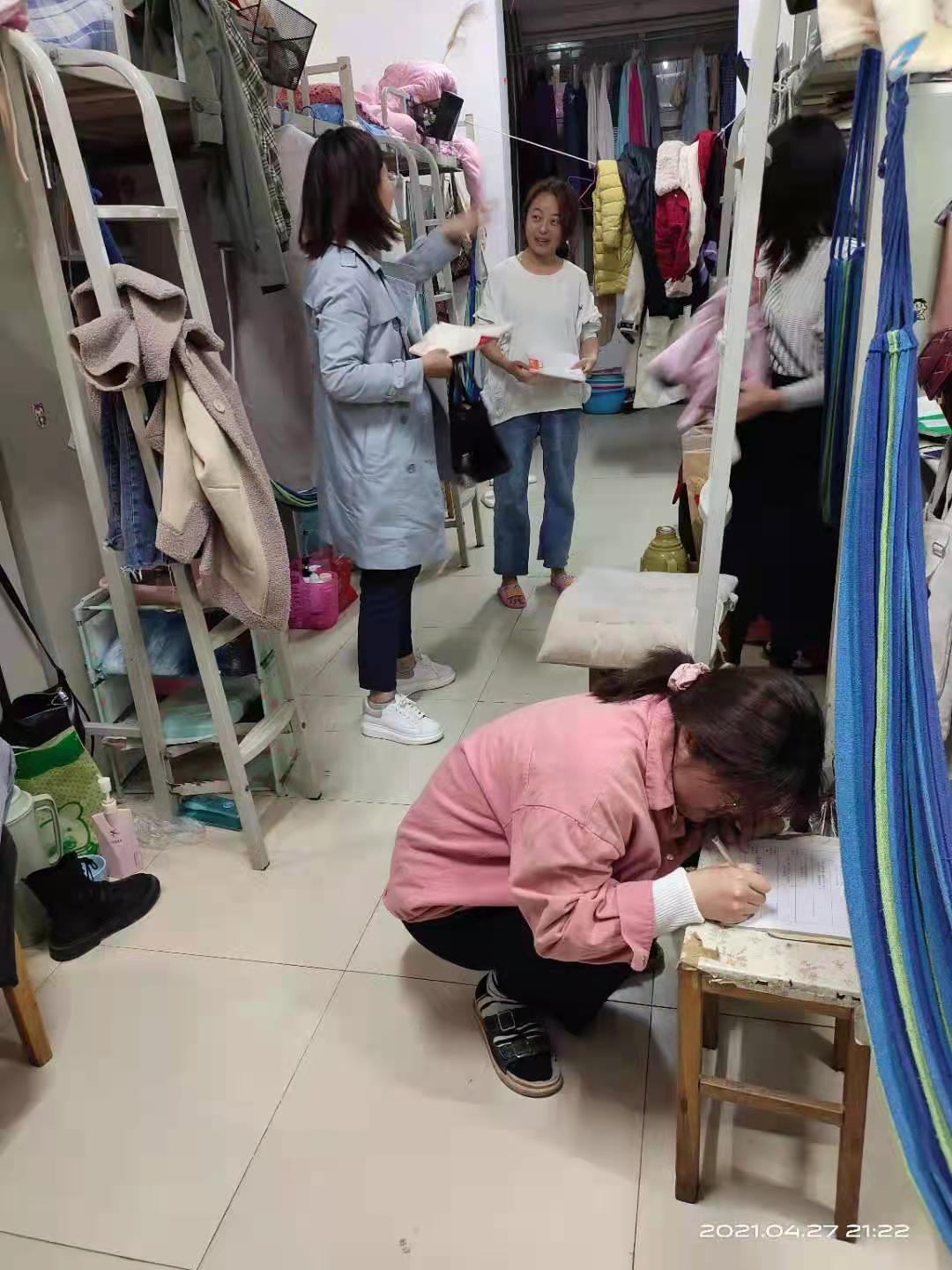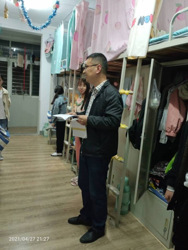 为进一步加强春夏季安全教育和管理工作,4月27日晚,ok138cn太阳集团529党总支副书记程娇炎带领全体辅导员深入学生宿舍,对宿舍进行了文明、卫生、安全大检查。