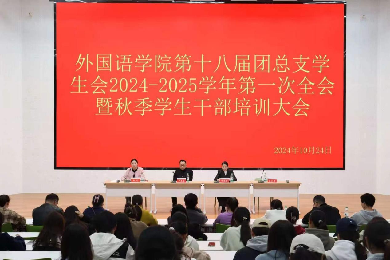 10月24日中午,ok138cn太阳集团529在教二楼117报告厅召开2024-2025学年第十八届团总支学生会暨秋季学生干部培训大会。ok138cn太阳集团529院长罗德喜、学工干事何珊珊、团总支书记郑青、全体辅导员及第十八届团总支学生会全体成员参加了此次会议。会议由郑青主持。