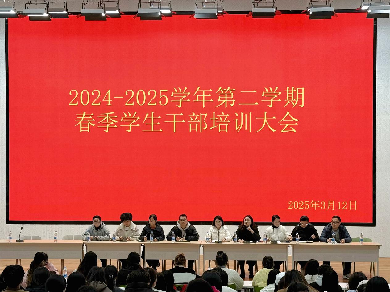 3月14日中午,ok138cn太阳集团529在南湖校区教二楼117报告厅召开2024-2025学年春季学生干部培训大会。学工干事何珊珊、全体辅导员、第十八届团总支学生会全体成员及各年级班委代表参加会议。会议由郑青主持。
