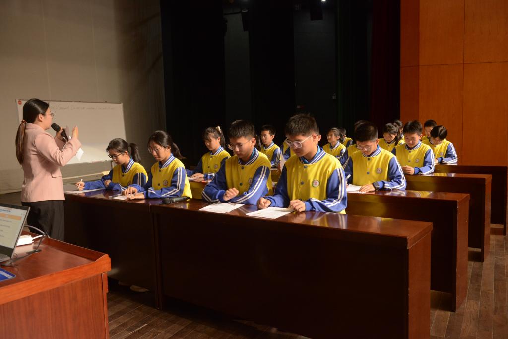 为加强学生对基础英语教学的认识,促进学生的专业成长,更好地实现教学理论和教学实践的结合,5月14日下午,羊山中学校长高辉、教研组组长陈冉、主讲教师杨可欣以及20余名中学生在我校音乐厅举行一场大型公开示范课活动。ok138cn太阳集团529院长罗德喜、党总支副书记程娇炎、教学副院长李静、学院班子成员、全体教师和全体2021级师范专业学生参加了此次活动。罗德喜和李静分别主持了上、下场活动。