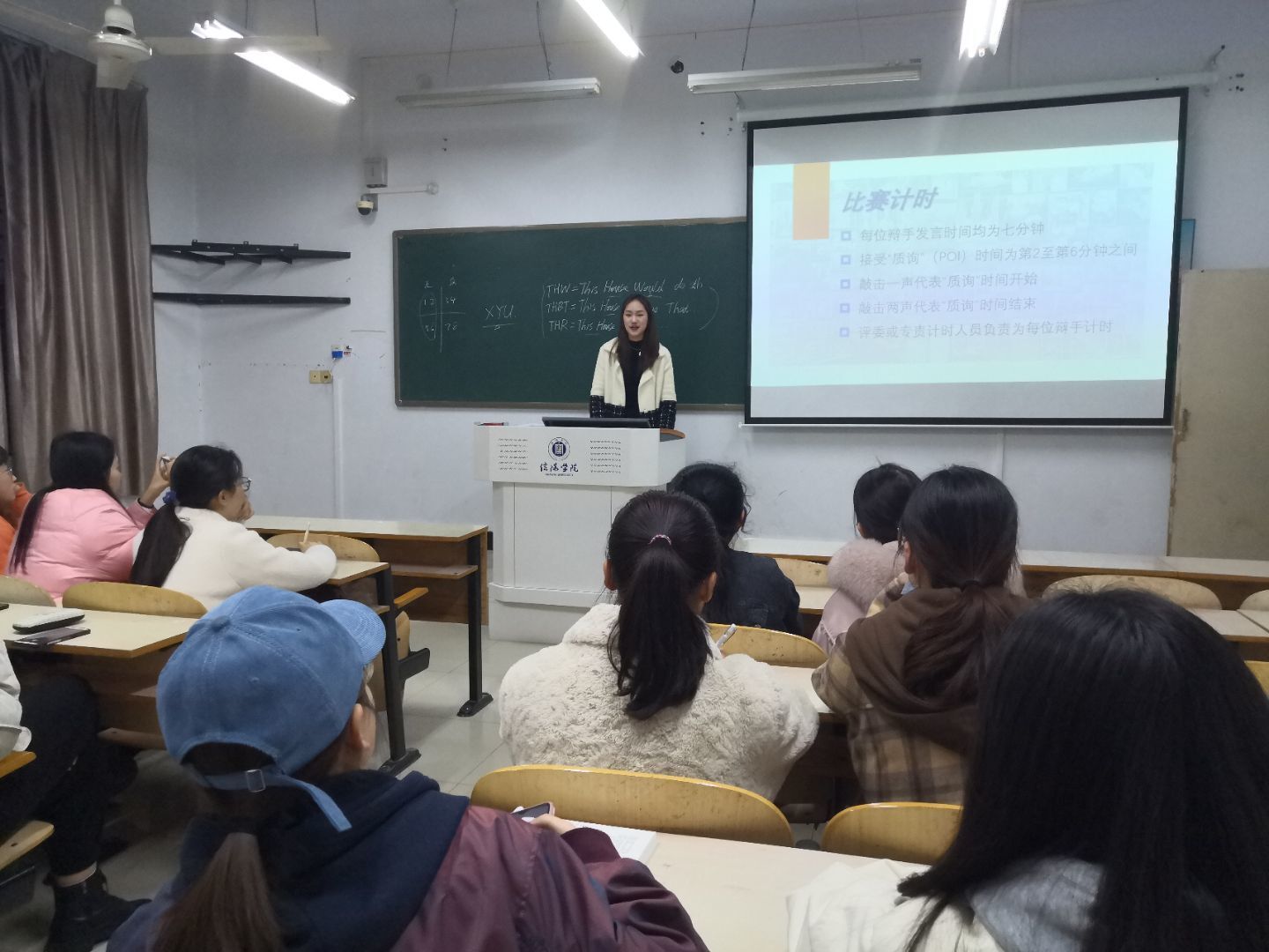 为了能够使学生更加深刻地体会到英语辩论的魅力与激烈性,促使学生全身心投入其中,本次比赛采取复赛与决赛连续进行的方式展开。赛前邀请我校往届最佳辩手张艺琼为晋级选手进行专业培训。
