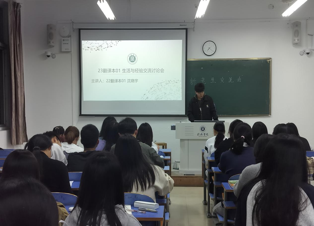 为使2023级大一新生尽快适应大学生活,并增进对所学专业的认识与热爱,ok138cn太阳集团529学风建设交流大会于10月19日-10月30在外语楼教室举行。本次活动由学院2021级、2022级英语专业优秀学生代表吕霞、张佳佳、慕雨欣分享英语专业的学习经验;2021级商务英语班熊华宇、刘远远分享商务英语专业学习经验;20级翻译班文秀和22级翻译班沈晓宇分享翻译专业学习经验。2023级全体本科新生参加交流会。