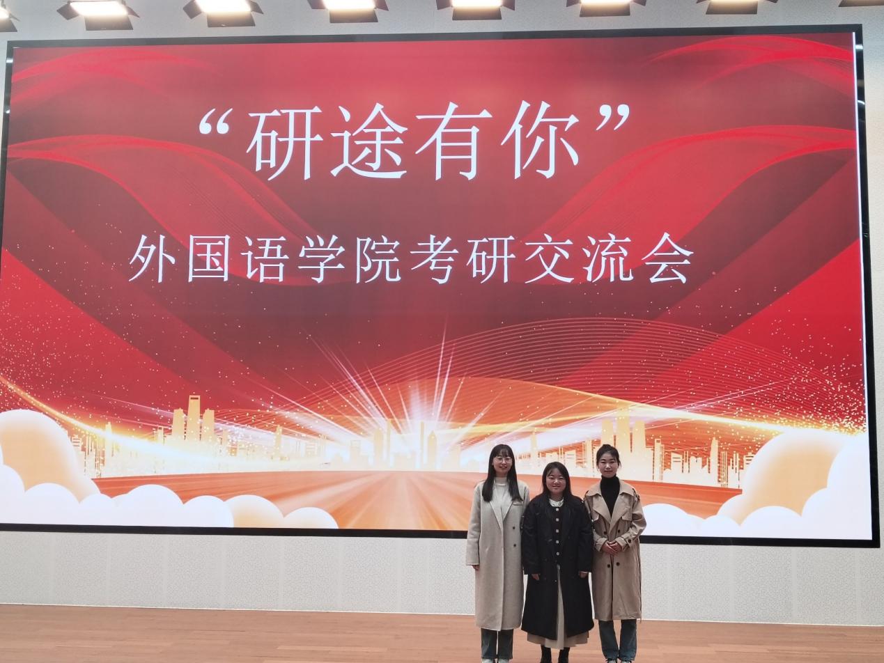 交流会中,两位学姐线上为我们分享经验,由院校选择到专业选择,从备考经验到就业方向。四位学姐线下为学弟学妹们讲解交流,包含英语专业的学科教学英语方向、翻译方向、文学方向、语言学方向,思政专业和心理健康专业。并针对同学们询问较多的问题进行耐心解答,告知下一届考研同学要确立自己的目标、坚定自己的初心并合理规划自己的安排,最后表达了对学弟学妹们的期待。在相互鼓励打气的氛围中,会议圆满结束。