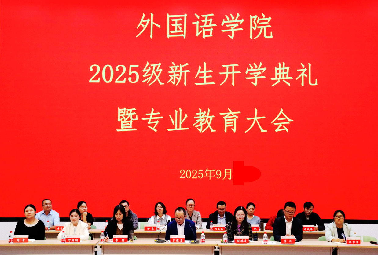 最后,罗德喜院长发表新生寄语。他以“外语:看见世界的窗口,连接未来的桥梁”为核心,提出对新生的三点期望:一是“夯实语言基础,筑牢专业根基”,不仅要熟练掌握外语的语音、词汇、语法,更要理解语言背后的文化逻辑与思维方式;二是“拓宽国际视野,提升跨文化能力”,培养“用外语讲好中国故事”的能力;三是“锚定成长目标,践行责任担当”,希望新生以学院优秀学长学姐为榜样,将个人发展与国家需求相结合,未来成为兼具“外语能力、专业素养、国际视野、家国情怀”的跨文化交流使者。
