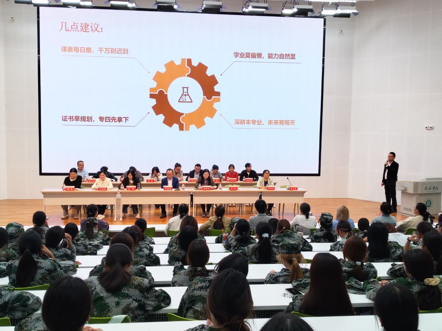 首先,李达为新生们介绍了英语专业基本情况,为同学们系统梳理英语专业的核心培养模块:从基础的听、说、读、写能力训练,到文学赏析、翻译理论与实践、跨文化交际等细分方向,结合外贸、教育、跨境媒体等真实职业场景,让学生直观感受专业应用价值,为新生搭建起清晰的专业学习框架,助力其制定个性化大学规划。