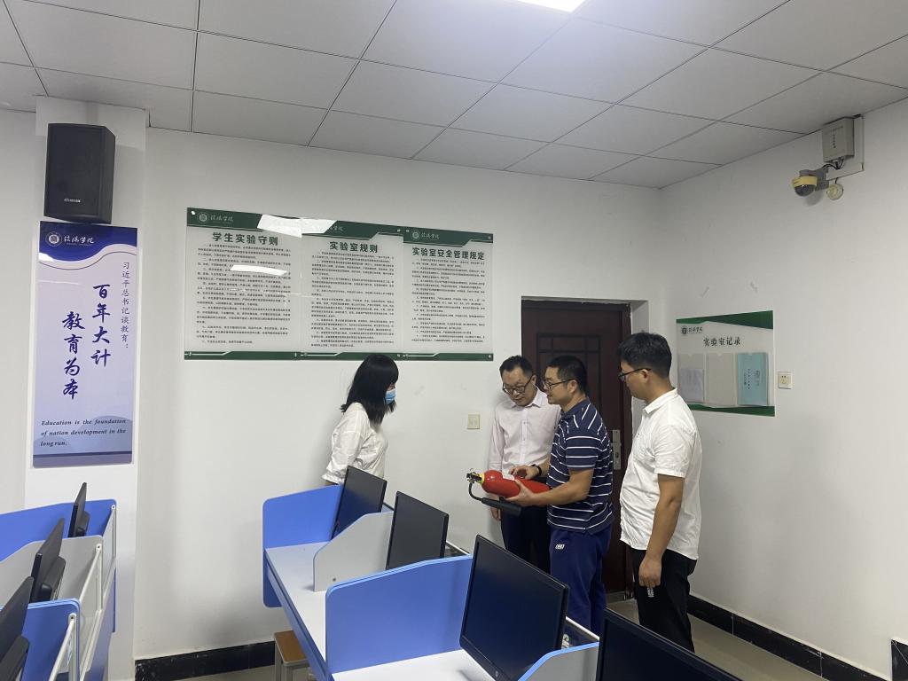 ok138cn太阳集团529院长罗德喜、党总支副书记程娇炎、教学副院长李静带领检查组对实验室场所环境、实验设备管理、消防器材、电路安全、个人安全防护及管理落实等情况进行了全覆盖式安全隐患排查及危险源管控筛查。