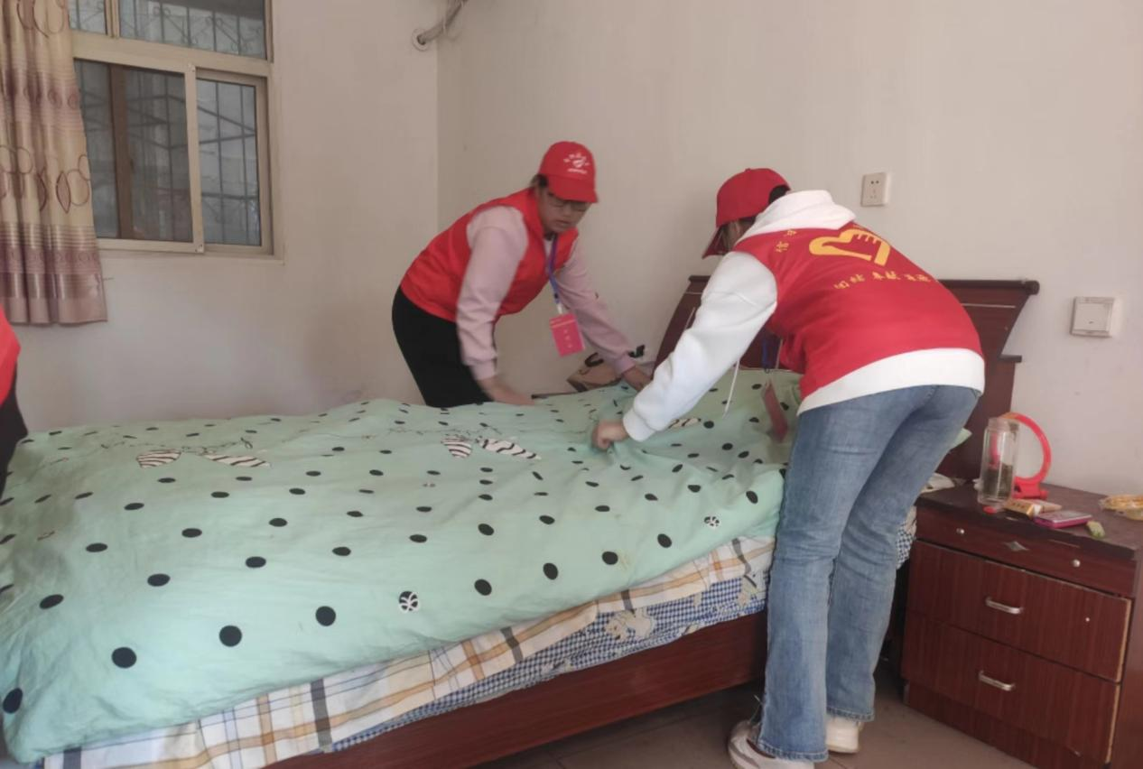 活动开始前,队长带领志愿者为老人送去牛奶、水果等慰问品,随后,队长将志愿者分成三组,志愿者们按照分工有序开展志愿服务活动。活动过程中,志愿者帮助老人清扫庭院、整理房间内务、为老人按摩,同老人在庭院中促膝而谈。志愿者们了解到老人的身体状况和生活情况,并叮咛长者们注意身体,不知不觉中,鲜艳的红马甲和谈笑声使敬老院充满了青春的气息。活动结束后,前进敬老院负责人对本次的志愿服务给予了很高的评价,并表示随时欢迎志愿者们的到来。
