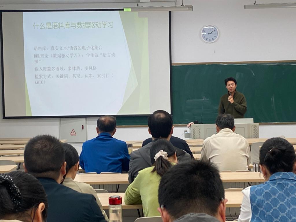 活动中,刘洪昊结合语料库语言学的发展历程,阐释了语料库在外语教学中的独特价值。他指出,语料库凭借其真实性和数量性优势,能够有效弥补教材语言与真实语境之间的差距,为日语学习者营造更为自然的语言环境。他援引国内外相关学者的研究成果,强调语料库在推动“以学生为中心”的教学转型方面具有重要意义。