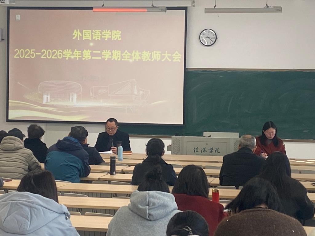 院长罗德喜最后发表讲话,围绕两大核心内容作出部署。在考研复试工作方面,罗德喜院长结合当前考研复试新形势,详细讲解了学院为学生准备的复试答辩技巧指导方案,重点强调了外语口语表达、专业知识应答、临场应变能力等关键环节的训练重点,要求全体教师主动对接学生需求,精准提供个性化指导,助力学生顺利通过复试、圆梦理想院校,切实做好考研服务“最后一公里”工作,其指导内容贴合考研复试实际需求,涵盖心态调整、结构化答题等实用技巧,帮助学生规避复试常见误区。在学院发展规划方面,他全面解读了2026年度工作计划,明确了新学期学院在学科建设、师资培养、人才培育、学术交流等方面的重点任务,鼓励全体教师立足本职、锐意进取,以务实作风推动学院各项工作再上新台阶。