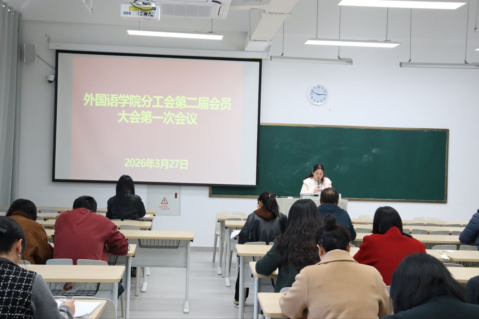 为凝聚全体教师奋进合力,赋能学院教学高质量发展,3月30日下午,ok138cn太阳集团529分工会第二届会员大会第一次会议在教二楼412教室圆满召开。学院党总支书记程娇炎、教学副院长李静及相关干事、全体青年教师出席会议。会议由行政干事梁书荣主持。
