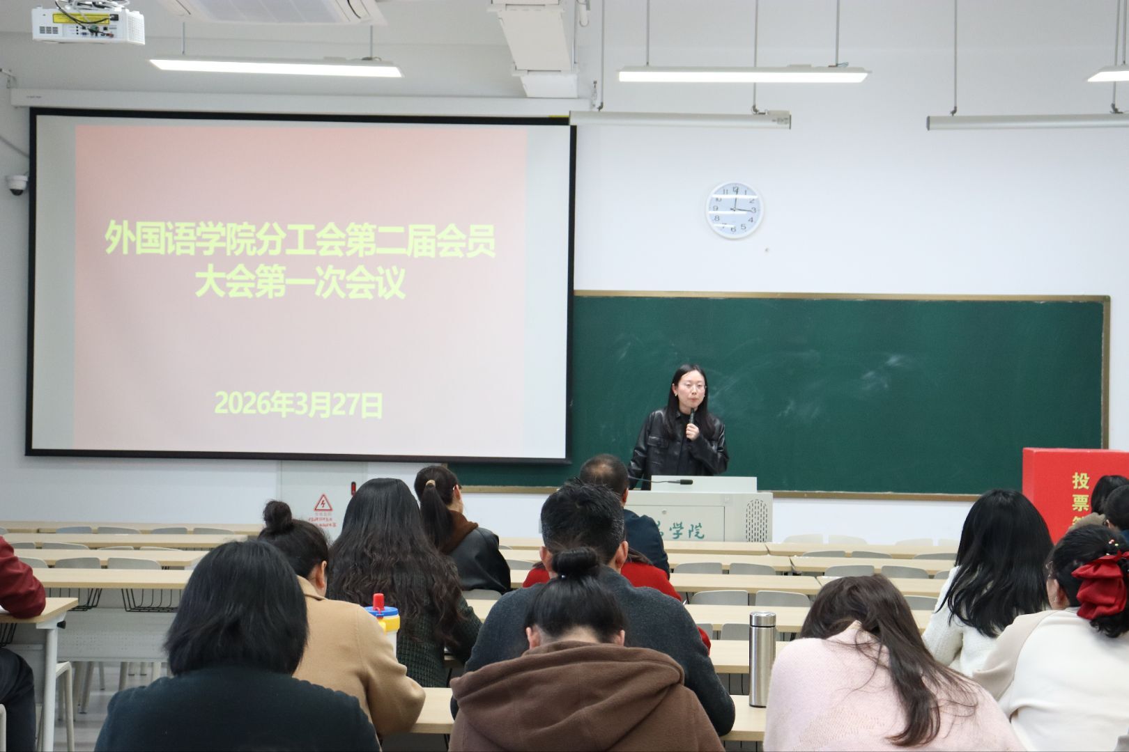 程娇炎同志代表上届分工会委员会作工作报告,全面复盘2025年度工作实绩。报告梳理了分工会在思想引领、师德师风、权益保障、民主管理、文体活动等方面的举措与成效,剖析了活动创新不足、精准服务不够等问题,并明确未来围绕思想铸魂、暖心惠民等五大重点部署任务,推动工会工作提质增效。