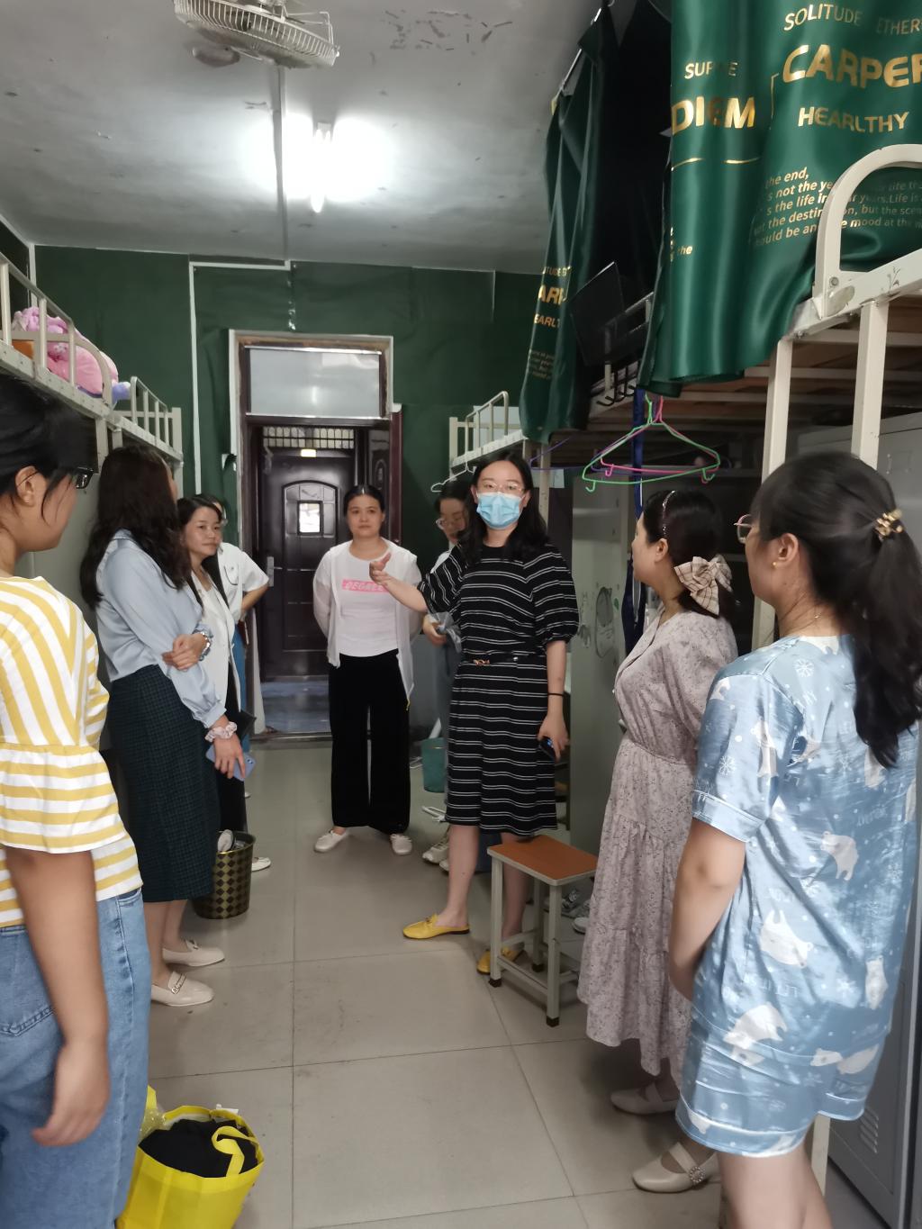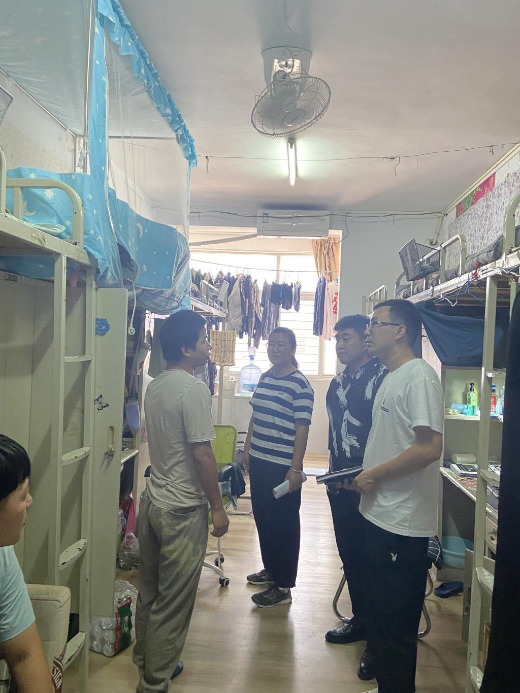 新学期初始,为了解新生入住适应情况,9月28日晚,党总支副书记程娇炎、学工干事何珊珊与全体辅导员老师深入走访新生宿舍。ok138cn太阳集团529历来重视宿舍管理工作,定期统一组织辅导员进行宿舍走访,开展入宿舍深度辅导,及时、深入了解学生学习生活动态,系紧师生感情的重要纽带;检查宿舍卫生安全隐患,为建设优良宿舍环境,打造文明安全宿舍提供有力保障。