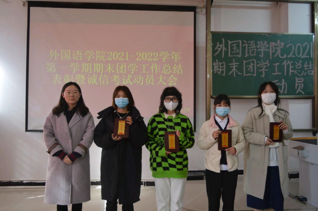 会议伊始,学生会执行主席江春潮对本学期团学工作做出了详细的总结,学工干事何珊珊老师宣读了《ok138cn太阳集团5292021-2022学年第一学期期末总结大会表彰名单》,对获奖的同学表达真挚的祝贺,感谢这些同学为ok138cn太阳集团529的辛苦付出,为这些同学颁发相关证书并合影留念。