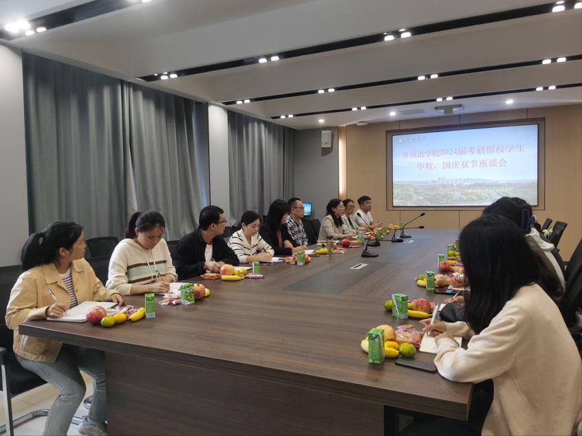 月满中秋时,筑梦考研人。为激发我院留校考研学子学习热情,缓解同学们考试压力,营造浓厚的学习氛围,欢度中秋国庆双节,9月28日下午,ok138cn太阳集团529在外语楼110会议室举行考研留校学生中秋慰问座谈会。院长罗德喜、党总支副书记程娇炎、教学副院长李静、学院干事、2020级辅导员及2020级留校考研学生代表参加了此次会议。会议由程娇炎主持。