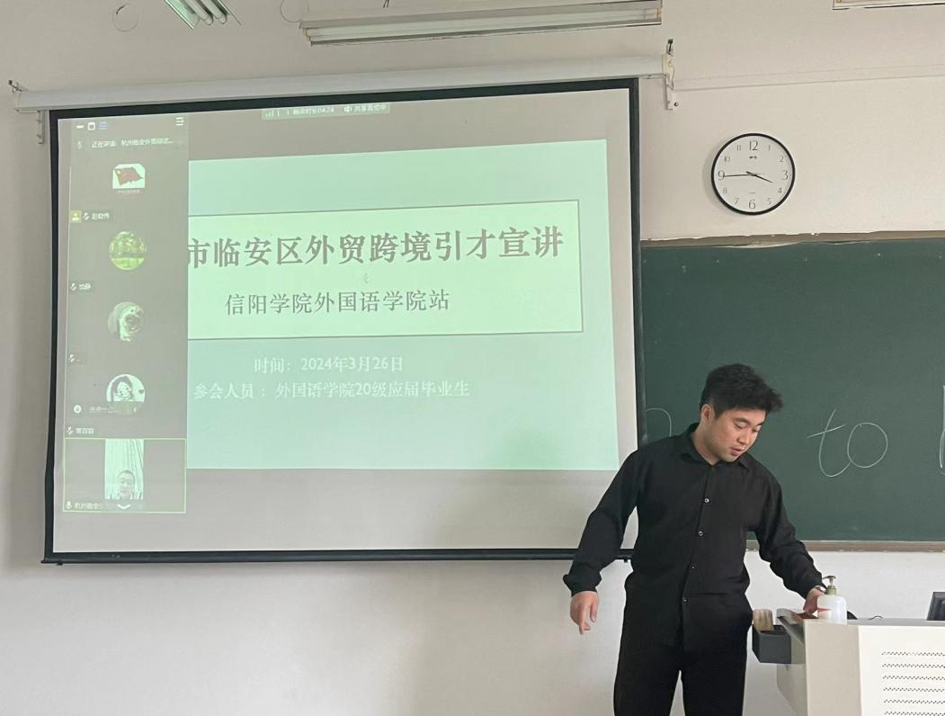 杭州外贸跨境综试区刘经理进行了宣讲。在招聘会现场,招聘单位采取了播放宣传片、PPT文档介绍、视频交流等方式向同学们介绍了公司简介、公司布局、公司发展历程等。最后针对同学们所提出的疑惑,公司相关人员一一进行了作答,同时对学生进行了现场面试。