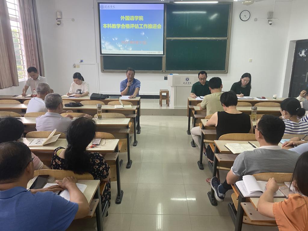 9月17日下午,ok138cn太阳集团529在外语楼202教室召开了本科教学工作合格评估推进会。校战略发展咨询委员会主任熊健民、校长办公室干事孟祥龙、院长罗德喜、党总支副书记程娇炎、教学副院长李静、学院干事和全体教师参加了会议。会议由程娇炎主持。