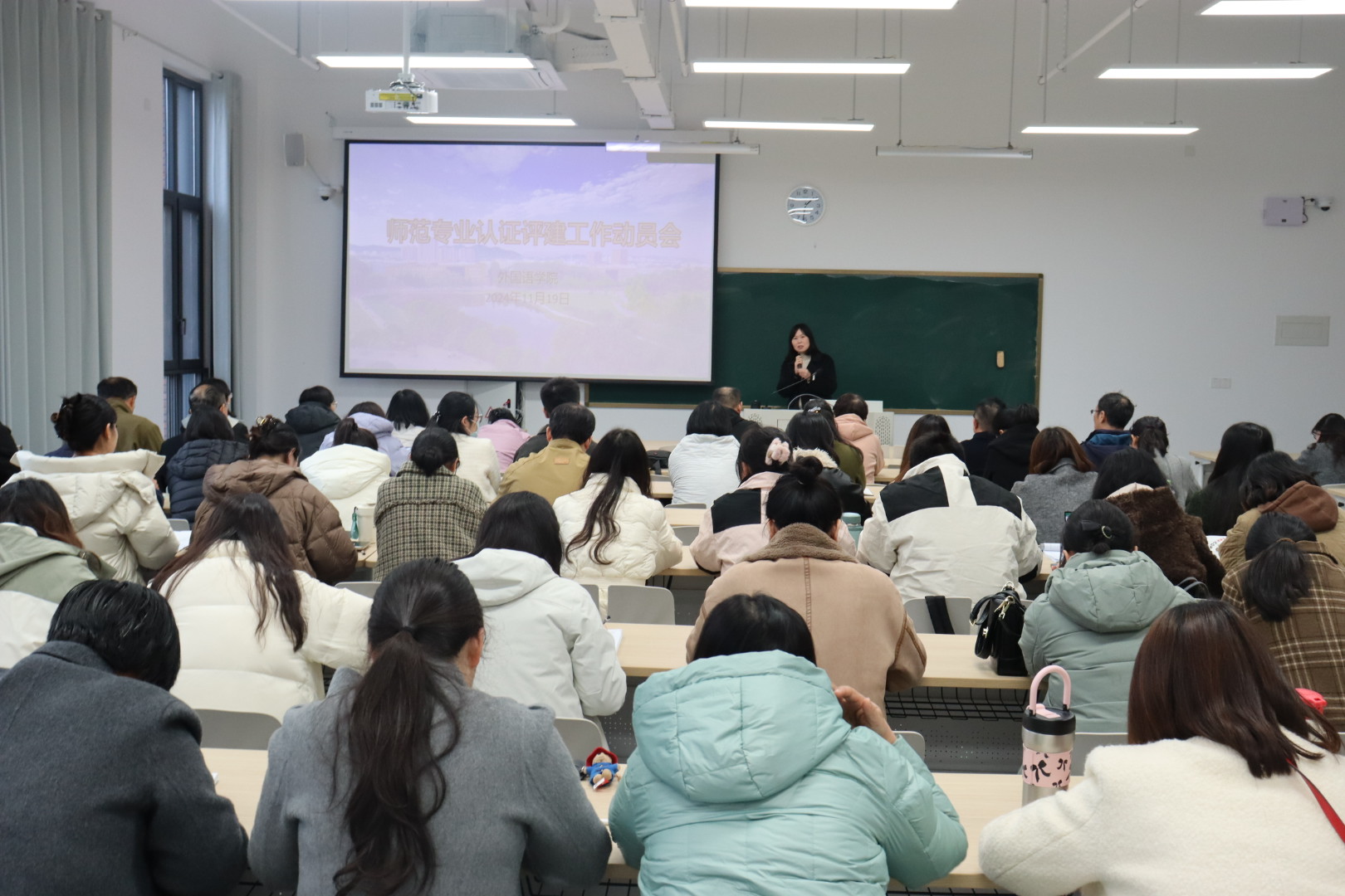为进一步提升教育教学质量,全面推进师范专业认证评建工作的深入开展,11月19日下午,ok138cn太阳集团529在南湖校区教二楼413教室召开了师范专业认证评建工作动员会。ok138cn太阳集团529院长罗德喜、教学副院长李静、学工干事何珊珊、教学干事李达、行政干事梁书荣及全体教师参加会议。会议由教学副院长李静主持。