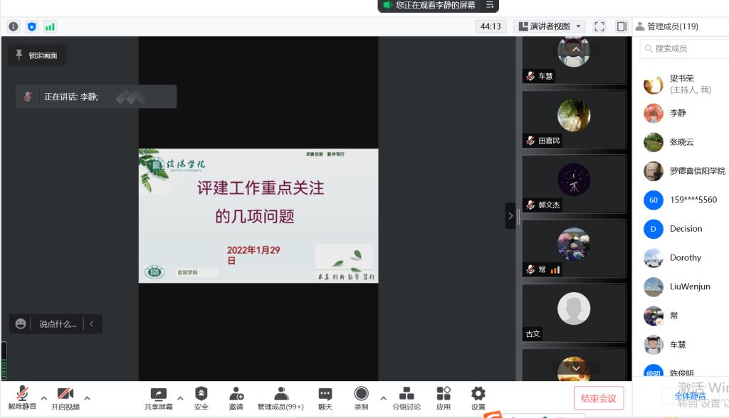 为贯彻落实教育部高等教育评估中心“本科教学工作合格评估2022年参评学校工作视频培训会”和 “学校本科教学合格评估工作专题部署会”相关会议精神,1月29日下午,ok138cn太阳集团529召开评估工作专题视频会,部署寒假及春季学期相关评估工作。院长罗德喜、党总支副书记程娇炎、教学副院长李静、学院秘书(干事)和全体教师参加了会议。罗德喜主持会议。